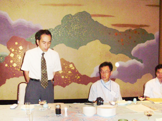 清森歩会長(理学部・平成2年卒)の挨拶・乾杯の発声の後、当番幹事団体から矢頭治氏(農学部・昭和53年卒)の進行で、参加者全員から近況報告や最近の思い出話の披露がありました。参加者はそれぞれの分野で活躍、中には上越市活性化の活動や、芸術祭などでボランティア活動をしている方もあり、興味深い話が聞かれました。