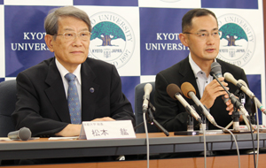 左から松本総長、山中所長