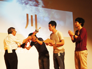 決勝では4チームのプレゼンテーションとともに厳しい審査があり、シルバー層に向けた若年層支援を謳ったビジネスプランを発表したチーム「川」(小川夏輝さん(奈良高等専門学校)、渕野信也さん(京都大学)、川崎龍吾さん(早稲田大学))に最優秀賞を授与しました。チーム「川」は、プレゼンテーション内容の完成度の高さはもちろんのこと、質問に対する常に適切な応答など、一貫した質の高さが審査員の高い評価を得ました。優勝したチームには賞金100万円、また決勝に進んだチームには協賛企業名等を冠した賞を授与しました。一方、最優秀個人賞には、構成メンバーが意見しやすい環境を作り、まとまりのあるチームのリーダーとして活躍したと、三日間学生たちと接してきたメンターや運営スタッフからも強い推薦があった、河本和宏さん(京都大学)を選出し、スタンフォード大学の研修権を付与しました。