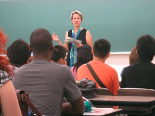 ![]() 自己紹介をする聴講生 | ![]() 講義内容の説明をする四倉先生 |