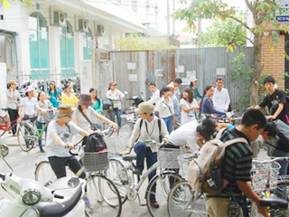 ![]() 自転車でフエ大生と市内見学へ | ![]() 風を感じる実習 |