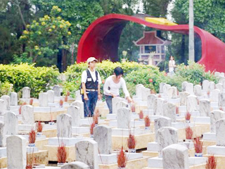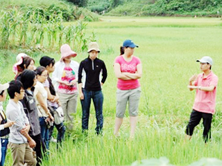 ![]() 狭い畦を歩くのも「勉強」 | ![]() 同じ年齢の人々が埋葬されている、チュンソン戦没者墓地 |