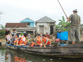 中部のフエを中心にホーチミンからハノイへ、ベトナムを横断する旅を通じて、地域それぞれの歴史、文化、環境と人びとの暮らしの関わりを学び、さまざまな交流をしました。フエでは、フエ大学の学生たち23名が講義の合間を縫って研修に加わり、市内の史跡やラグーンの漁村、JICA草の根事業のサイト、戦跡をともに訪問し親交を深めました。インターン研修やフィールド調査でフエ入りしている地球環境学舎の大学院生らから研究の話を聞き、途中で立ち寄ったホイアンでは、青年海外協力隊員5名と歓談し、海外で働く若者の姿を身近に感じることができました。研修中に見たり感じたりしたことからテーマを拾い、英語による発表会を行い、フエ大学の先生や学生らと活発な意見交換を行いました。またハノイでは、ベトナム国家大学日本語学科の学生12名と史跡や旧市街を訪れ、日本語を用いての交流を深めました。