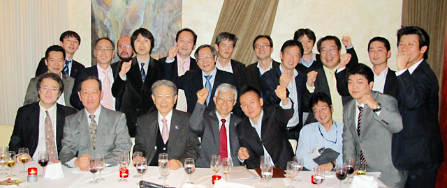 松本総長の挨拶の後、産官学連携本部欧州事務所の野村俊夫 特任教授による乾杯の発声があり、続いて、各会員の自己紹介がありました。総長と参加会員との活発な交流・情報交換が行われ、盛会のうちに終了しました。