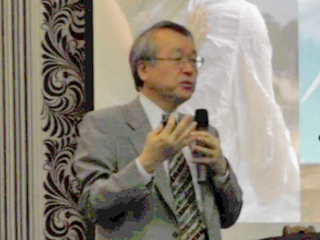 ![]() 挨拶するWiramihardja会長 | ![]() 講演する大西理事・副学長 |