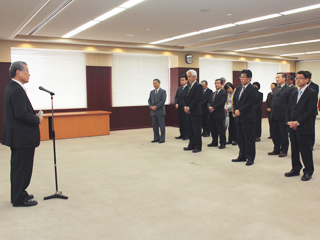 平成23年度に退職する職員に対して、事務本部棟において総長による挨拶を実施し、塩田浩平 理事・副学長同席のもと、対象者22名が出席しました。