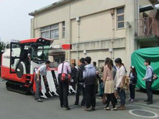 第3回は、ヤンマー株式会社 宮本宗徳氏に大型コンバインの実演を交えた講義をしていただきました。性能、動作や内部の構造について詳しい説明があり、参加した学生からもたくさんの質問が出ていました。