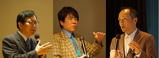 左から、講義をする乾教授、十一教授、河合教授