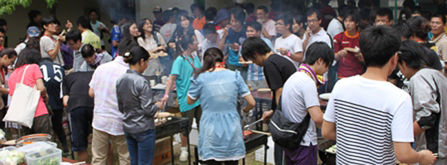 その後のバーベキューパーティーにも150名を超える参加者があり、スポーツとパーティーを通して充実した国際交流ができました。