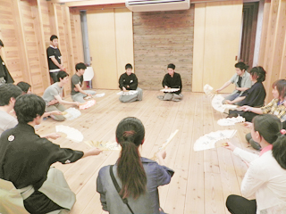 扇の使い方を学ぶ参加者