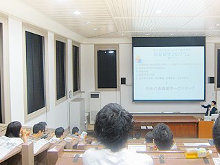 ![]() アジア留学の魅力、東アジア圏の超短期留学プログラムに関する講演の様子 |