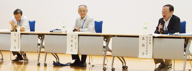 続いて、平成25年度入学試験において変更を予定している3学部について、冨田恭彦 総合人間学部長、三輪哲二 理学研究科副研究科長、北野正雄 工学部長による選抜方法の変更点に関する説明がありました。