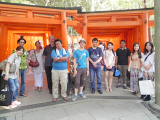 ![]() 伏見稲荷大社に向かう参加者 | ![]() 鳥居の前で集合写真 |