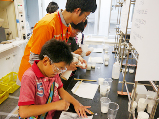 公開ラボでは、自分だけのスーパーボール作りができる「身のまわりの高分子材料」や大型施設による実験「居住空間の災害を観る」など、普段は見ることができない研究施設や実験室の公開などを通じて科学に親しんでいただきました。