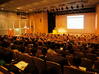 ![]() 講演をする佐山氏 | ![]() 会場の様子 |