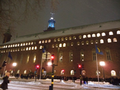 ![]() 授賞式会場のコンサートホール ![]() 晩餐会会場の市庁舎 |