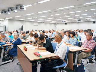 西欧最大の神学者であるアウグスティヌスの自叙伝ともいえる「告白」をたどりながら、人間の生にとって宗教が持つ意味を考える川添教授の講演に、来場者は興味深く聞き入っていました。
