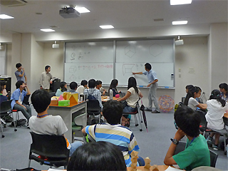 初日の午前中は、開講式およびオリエンテーション実施後、「古代ローマ人の世界と私たちの世界 -古代遺跡と「ハリー・ポッター」・「テルマエ・ロマエ」を結ぶ歴史学-」と題する南川高志 文学研究科教授の特別講義を実施し、ローマ帝国が実際どのようなものであったか、「文明の帝国」ローマという歴史理解がいかにしてできていったかについての講義がありました。特別講義終了後には、参加した中学生が講師を取り囲んで熱心に質問する場面も見られました。