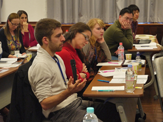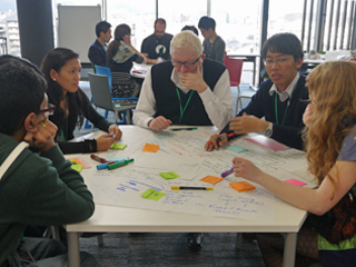 企画は本学博士課程教育リーディングプログラム「デザイン学大学院連携プログラム」(以後、デザインスクールに同じ)が主に担当しました。本スクールの受講者はRENKEI 加盟大学11大学(京都大学・九州大学・名古屋大学・立命館大学・東北大学・ブリストル大学・リーズ大学・リバプール大学・ニューカッスル大学・サウサンプトン大学・UCL(University College London))から選抜された2名ずつ合計22名の博士後期課程学生とポスドクです。彼らは2013年の7月に行われた英国ブリストル大学でのサマースクールに全員が参加しており、その後もSNSを通じて交流を深め、このたび再度京都に集いました。その他、英国から3名の教員と本学デザインスクール教員がファシリテーターとして参加しました。