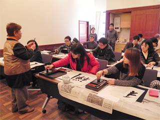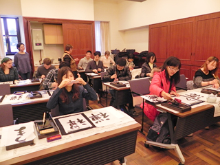 1月の留学生ラウンジ「きずな」のイベントとして、書道家の鳥居氏を招いて「きずな新年書初め大会」を開催しました。この大会は、2004年より「きずな」イベントとして定着しているものです。