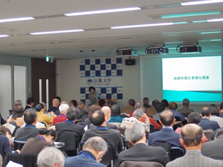 ![]() 会場の様子 | ![]() 講演する平川准教授 |
