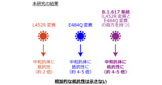 SARS-CoV-2 B.1.617系統(俗称「インド株」)のL452R変異とE484Q変異は 中和抗体感受性の低下において、相加的な抵抗性を示さない