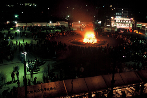 前夜祭とは、「11月祭」(NF)の前日に授業を終えた京大生が吉田グラウンドに集まり、ファイヤー、模擬店、ステージを楽しむお祭りです。