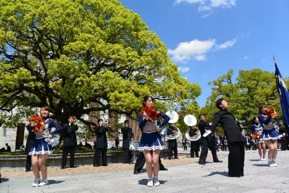 4月24日(月曜日)お昼休みに、クスノキ前広場にて体育会壮行会が開催され、各クラブが勢揃いしました。