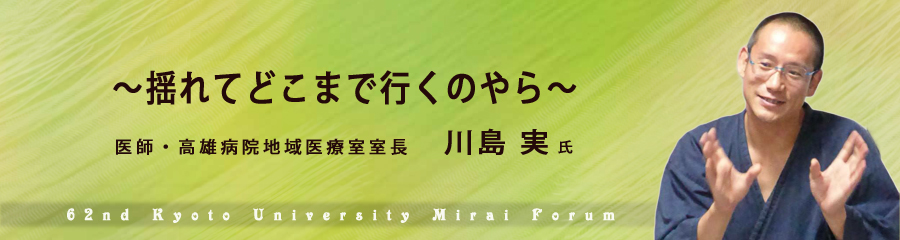 第62回京都大学未来フォーラムは、医学部卒業生の医師で高雄病院地域医療室室長の川島 実 氏を講師にお迎えし開催します。