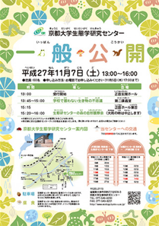 生態学研究センター 一般公開: 学校で習わない生き物の不思議http://www.kyoto-u.ac.jp/ja/social/events_news/office/syogai/kouhou/news/2014/141108_1.html#e01