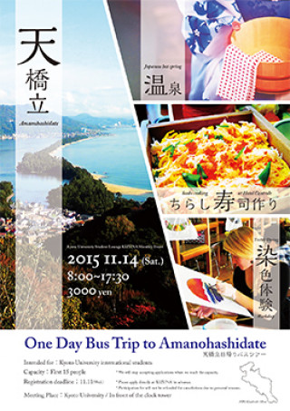 留学生ラウンジ「きずな」では11月のイベントとして、「天橋立日帰りバスツアー」を開催します。