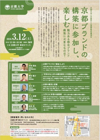 今回、本学と京都市は「京都市と京都大学との国際学術都市としての魅力向上に関する連携協定」を締結しました。これを記念して、「京都ブランドの構築に参加し、楽しむ」をテーマにした講演会を行います。