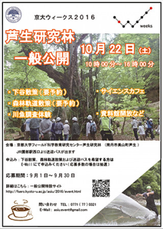 芦生研究林 一般公開http://www.kyoto-u.ac.jp/ja/social/events_news/office/soumu/shogai/news/2015/151010_1.html#h