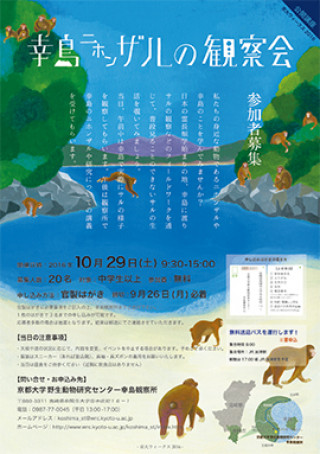 幸島観察所 公開講座「1日研究体験 -幸島のサルの観察-」http://www.kyoto-u.ac.jp/ja/social/events_news/office/soumu/shogai/news/2015/151010_1.html#x