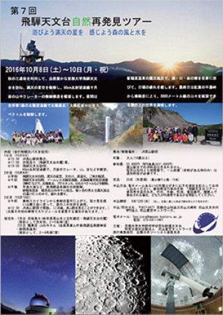 飛騨天文台 社会人のための「飛騨天文台 自然再発見ツアー」http://www.kyoto-u.ac.jp/ja/social/events_news/office/soumu/shogai/news/2015/151010_1.html#b