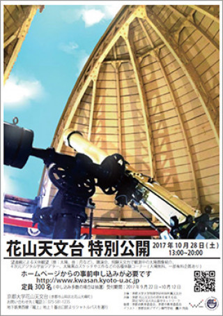 花山天文台は設立以来80年以上の歴史を持ち、45cm屈折望遠鏡、18cmザートリウス望遠鏡、70cmシーロスタット望遠鏡を用いて、太陽・太陽系天体の観測をしています。さらに、飛騨天文台と協力して太陽・恒星活動の研究を進めています。また、歴史的価値の高い天文機器を保管展示しています。