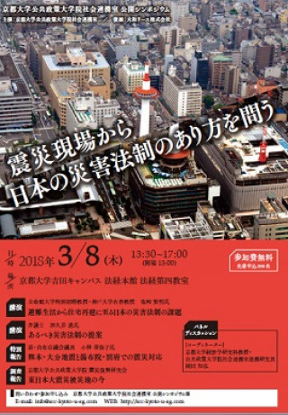 | 13時40分 | 調査報告 「東日本大震災被災地の今」 京都大学公共政策大学院 震災復興研究会 |