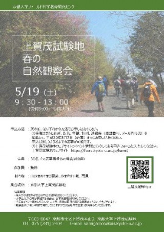 上賀茂試験地では、春の自然観察会を下記のとおり実施します。