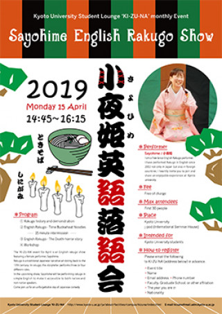 4月の「きずな」イベントは、日本人女性落語家である小夜姫さんをお迎えして毎回大好評の「小夜姫英語落語会」を開催します。