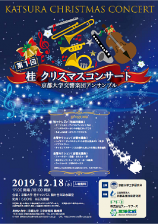工学研究科では、桂キャンパス船井哲良記念講堂において、京都大学交響楽団アンサンブルによる「第1回 桂クリスマスコンサート」を開催します。