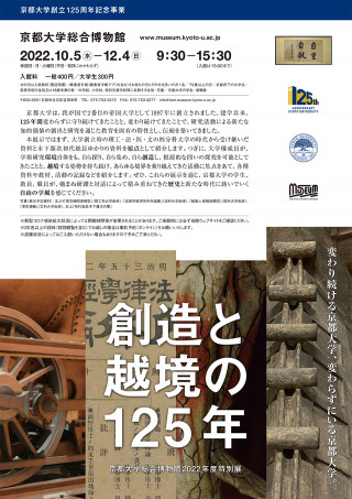 京都大学は、我が国で2番目の帝国大学として1897年に創立されました。建学以来、125年間変わらずに守り続けてきたことと、変わり続けてきたことで、研究活動による新たな知的価値の創出と研究を通じた教育を固有の特性とし、伝統を築いてきました。