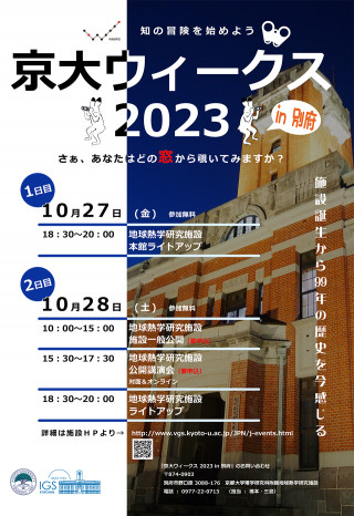 7月22日(土曜日)から11月18日(土曜日)を「京大ウィークス2023」とし、この期間に、全国各地の京都大学の教育研究施設が公開イベントを実施します。詳細・その他のイベントについては、以下のページをご確認ください。