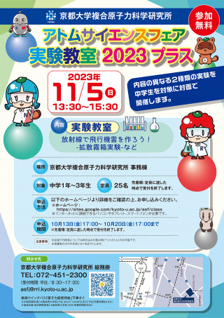複合原子力科学研究所では、中学生以上を対象とした科学実験教室を実施します。