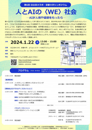 本シンポジウムでは、生成AI時代におけるAIと人の未来像に関する基調講演に続き、ガバナンスや、道徳的エージェント、信頼されるAIに取り組んでいる研究者をそれぞれお呼びし、ポスト生成AI時代の人とテクノロジのあるべき姿について、理論と実践の両面からパネルディスカッションを通して議論します。