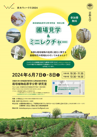 6月7日(金曜日)から11月9日(土曜日)を「京大ウィークス2024」とし、この期間に、全国各地の京都大学の教育研究施設が公開イベントを実施します。詳細・その他のイベントについては、以下のページをご確認ください。