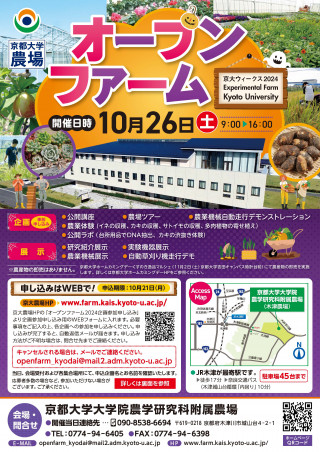 農学研究科附属農場では、「京大農場オープンファーム2024」を開催します。