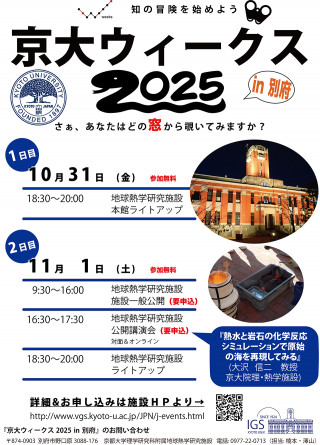 | 開催地 | 附属地球熱学研究施設(大分県別府市野口原3088-176)およびオンライン |