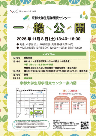 6月7日(土曜日)から11月8日(土曜日)を「京大ウィークス2025」とし、この期間に、全国各地の京都大学の教育研究施設が公開イベントを実施します。詳細・その他のイベントについては、以下のページをご確認ください。