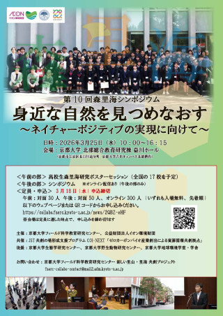 森里海連環学を通じた持続可能社会の創成をめざして、イオン環境財団と本学フィールド科学教育研究センターの協働により、高校生の研究発表など多世代の参加者からなるシンポジウムを開催します。