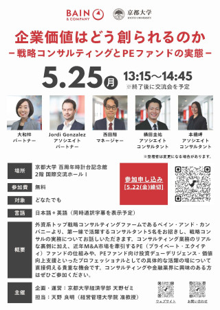 コンサルティング業務のリアルな裏側に加え、近年M&A市場を牽引するPE(プライベート・エクイティ)ファンドの仕組みや、PEファンド向け投資デューデリジェンス・価値向上支援といったプロフェッショナルとしての具体的な活躍の場について直接話を聞ける貴重な機会です。コンサルティングや金融業界に興味のある方はぜひご参加ください。